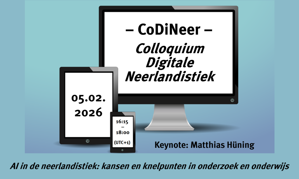 Graag nodigen we alle belangstellenden uit voor de vierde sessie van het online Colloquium Digitale Neerlandistiek, CoDiNeer, op donderdag 5 februari 2026, vanaf 16:15 uur t/m 18:00 uur (UTC +1).